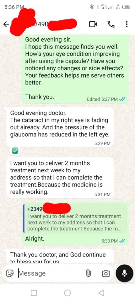 While some users feel relief in just one pack, we recommend 2 to 3 packs for a complete 30–60 day treatment, especially for chronic conditions like glaucoma or cataracts.